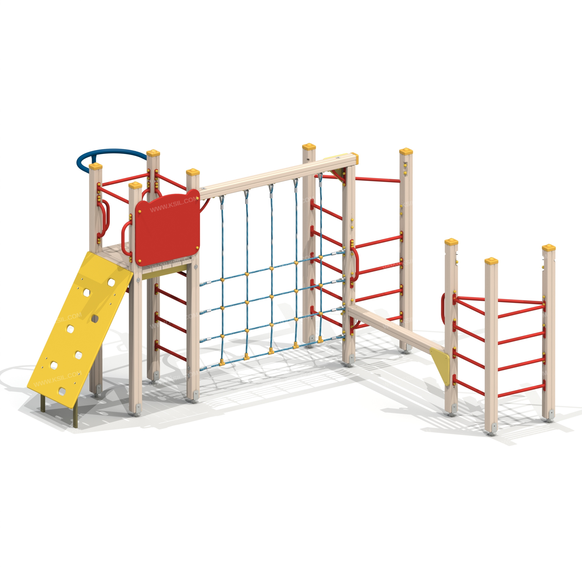 Спортивный комплекс должен представлять собой модульную сборно-разборную конструкцию и состоять из башни и гимнастического комплекса, соединенные между собой вертикальной полипропиленовой сеткой для лазанья.