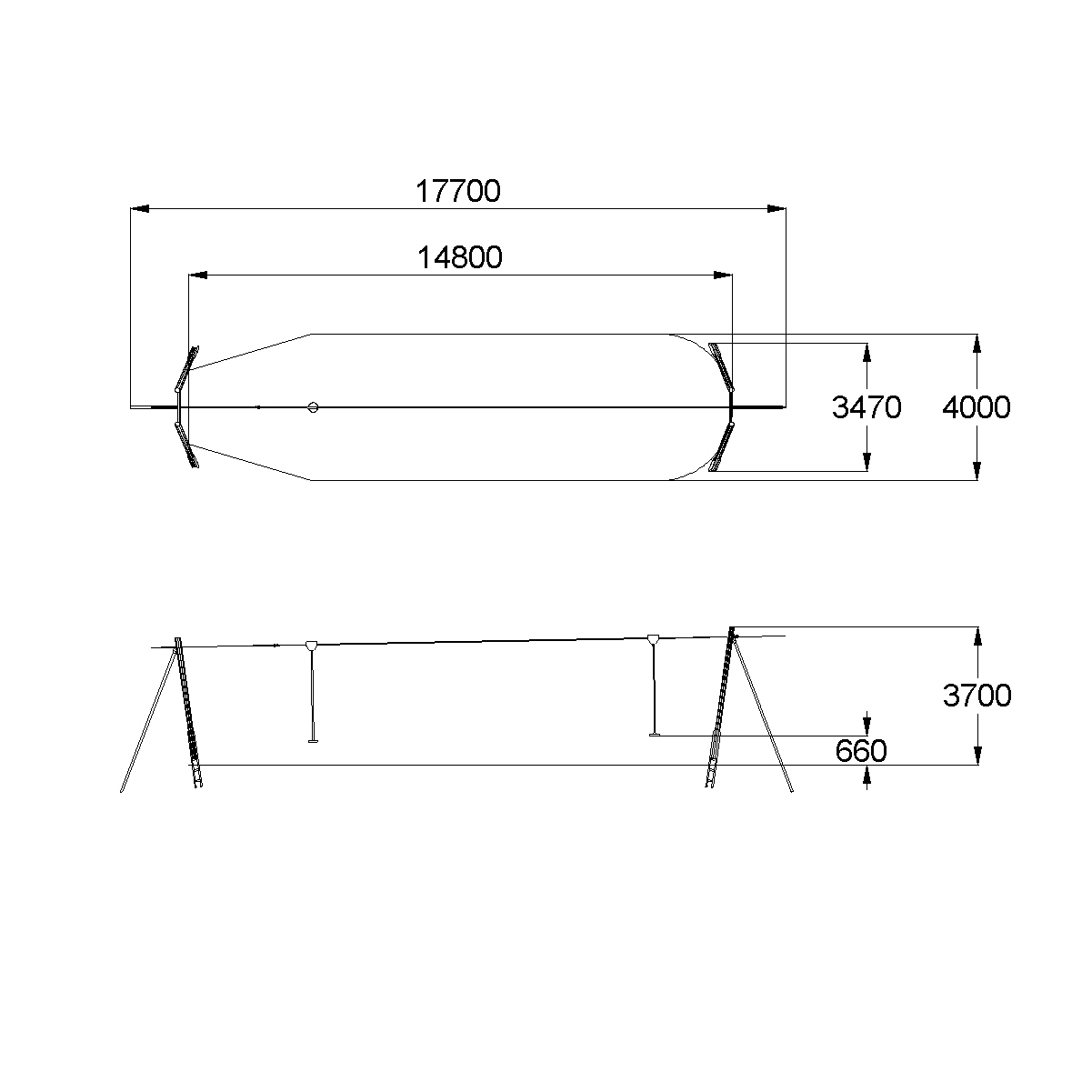 Канатная дорога должна представлять собой устойчивую конструкцию, обеспечивающую безопасные условия для занятий спортом на свежем воздухе. Канатная дорога должна состоять из двух опор на трех стойках, две из которых у каждой выполнены из клееного деревянного бруса сечением не менее 136х136 мм и одна металлическая. Сверху натянут армированный трос диаметром не менее 10 мм, к которому должно быть подвешено сиденье с роликами. Для смягчения после движения сиденья с роликами на трос устанавливаются две тормозные системы в начале и конце участка движения