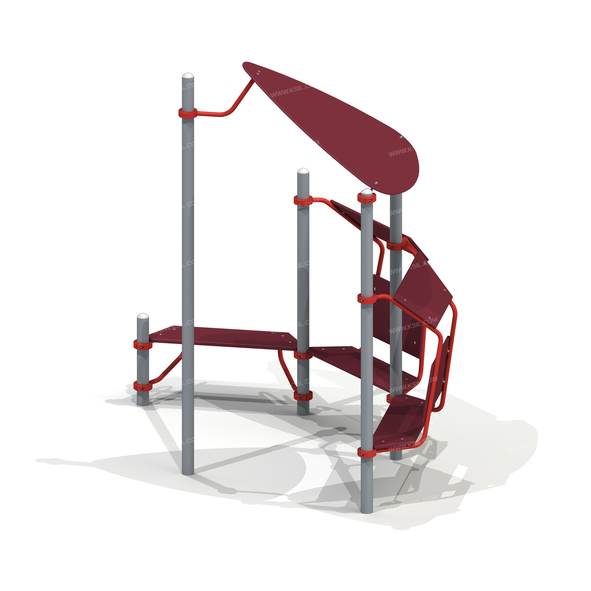 Металлические элементы должны быть покрыты порошковыми красками или подвергнуты гальванизации. Сварные швы должны быть гладкими и исключать возможность травмирования пользователей при контакте. Металлические элементы конструкции не должны состоять из нескольких частей, соединенных между собой.Весь крепеж должен быть оцинкован, все углы закруглены радиусом не менее 3 мм. Концы труб должны быть закрыты.Промежутки и стыки между элементами оборудования не должны допускать застревания частей тела и одежды пользователей. В конструкции должна быть предусмотрена возможность доступа взрослого при обстоятельствах, требующих посторонней помощи пользователю.Фанера влагостойкая не ниже I сорта изготовленная из шлифованного березового шпона повышенной водостойкости, склеенного клеем класса эмиссии Е1 с предварительной заделкой (замазкой или вставками) естественных дефектов древесины.Материалы из древесины не должны иметь на поверхности дефектов обработки. C целью повышения качества и безопасности продукции, в документацию на изделие могут вноситься изменения (изображение, размеры, и т.п.).