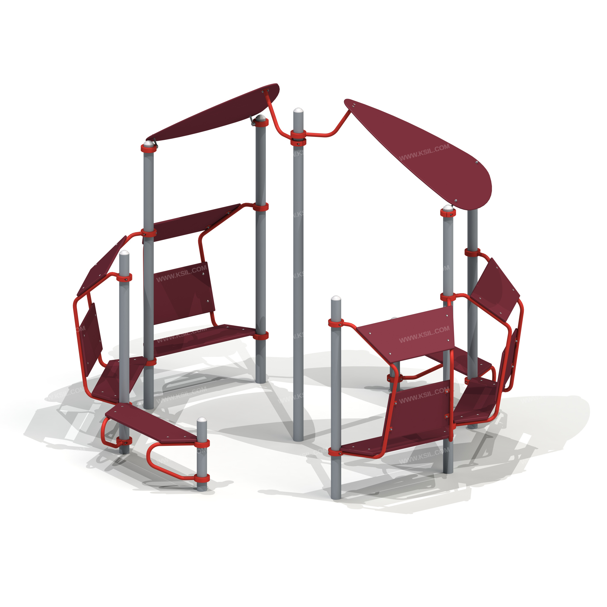 Металлические элементы должны быть покрыты порошковыми красками или подвергнуты гальванизации. Сварные швы должны быть гладкими и исключать возможность травмирования пользователей при контакте. Металлические элементы конструкции не должны состоять из нескольких частей, соединенных между собой.Весь крепеж должен быть оцинкован, все углы закруглены радиусом не менее 3 мм. Концы труб должны быть закрыты.Промежутки и стыки между элементами оборудования не должны допускать застревания частей тела и одежды пользователей. В конструкции должна быть предусмотрена возможность доступа взрослого при обстоятельствах, требующих посторонней помощи пользователю.Фанера влагостойкая не ниже I сорта изготовленная из шлифованного березового шпона повышенной водостойкости, склеенного клеем класса эмиссии Е1 с предварительной заделкой (замазкой или вставками) естественных дефектов древесины.Материалы из древесины не должны иметь на поверхности дефектов обработки. C целью повышения качества и безопасности продукции, в документацию на изделие могут вноситься изменения (изображение, размеры, и т.п.).