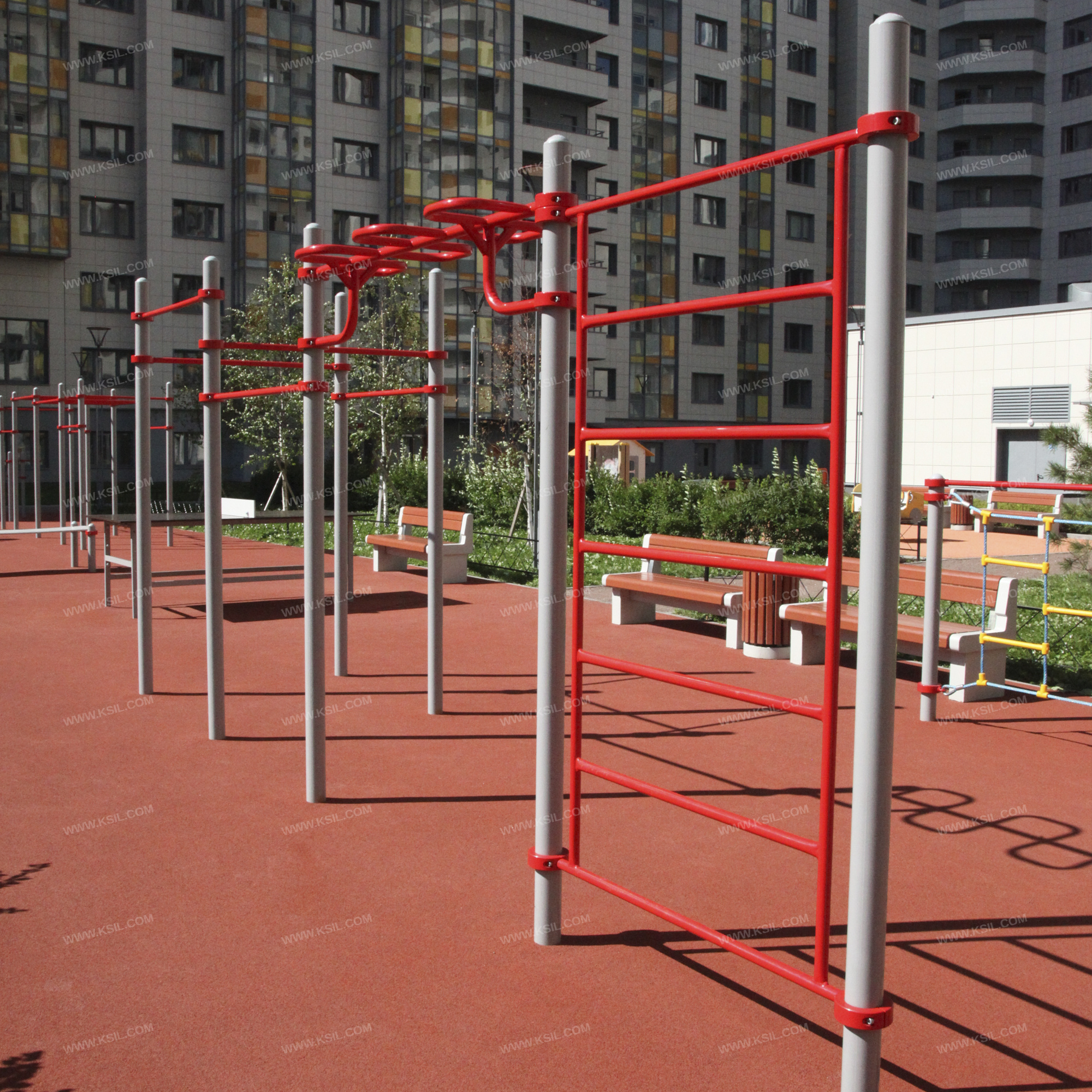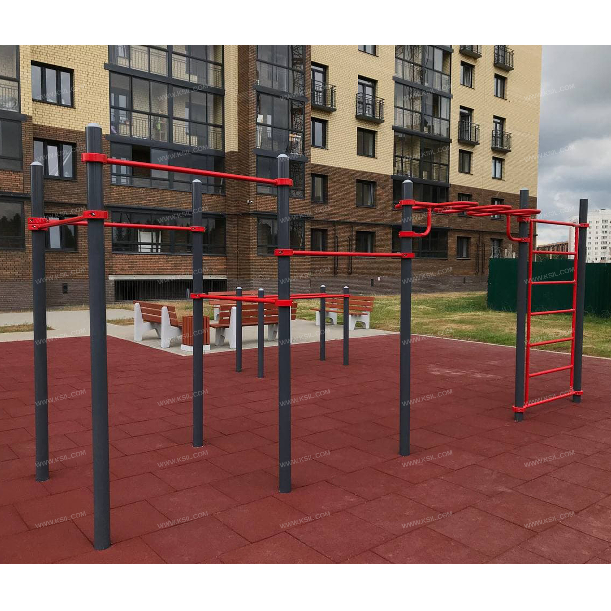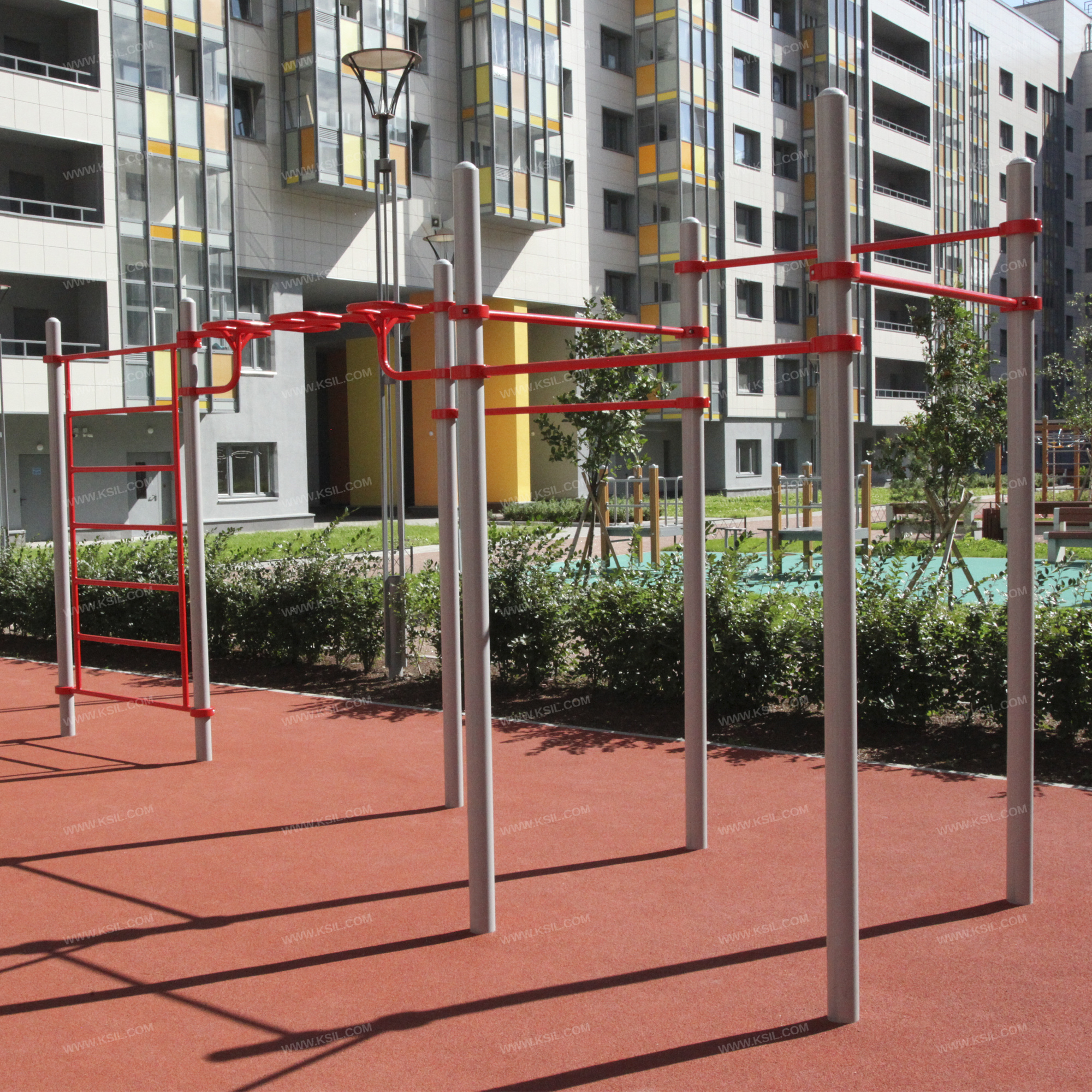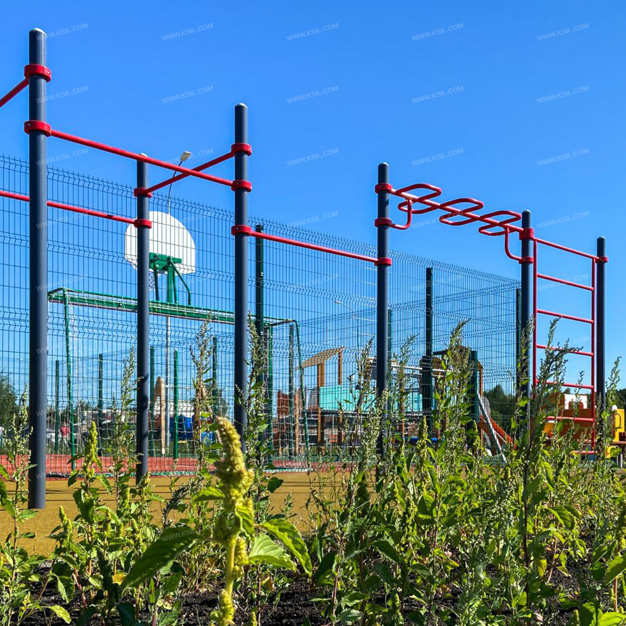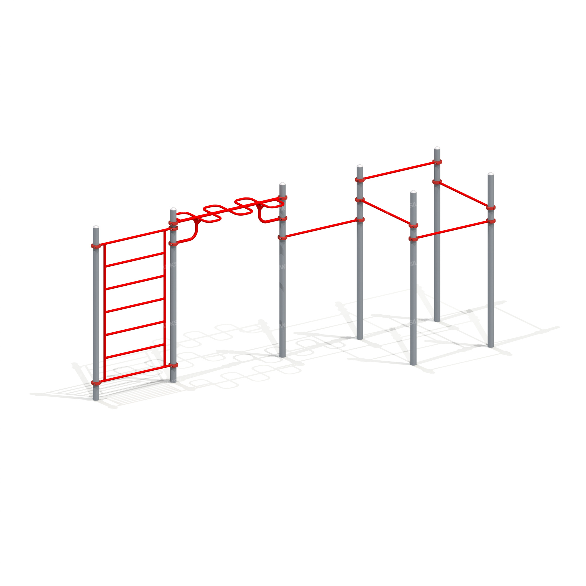 Металлические элементы должны быть покрыты порошковыми красками или подвергнуты гальванизации. Сварные швы должны быть гладкими и исключать возможность травмирования пользователей при контакте. Металлические элементы конструкции не должны состоять из нескольких частей, соединенных между собой.Весь крепеж должен быть оцинкован, все углы закруглены радиусом не менее 3 мм. Концы труб должны быть закрыты.Промежутки и стыки между элементами оборудования не должны допускать застревания частей тела и одежды пользователей. В конструкции должна быть предусмотрена возможность доступа взрослого при обстоятельствах, требующих посторонней помощи пользователю.C целью повышения качества и безопасности продукции, в документацию на изделие могут вноситься изменения (изображение, размеры, и т.п.).