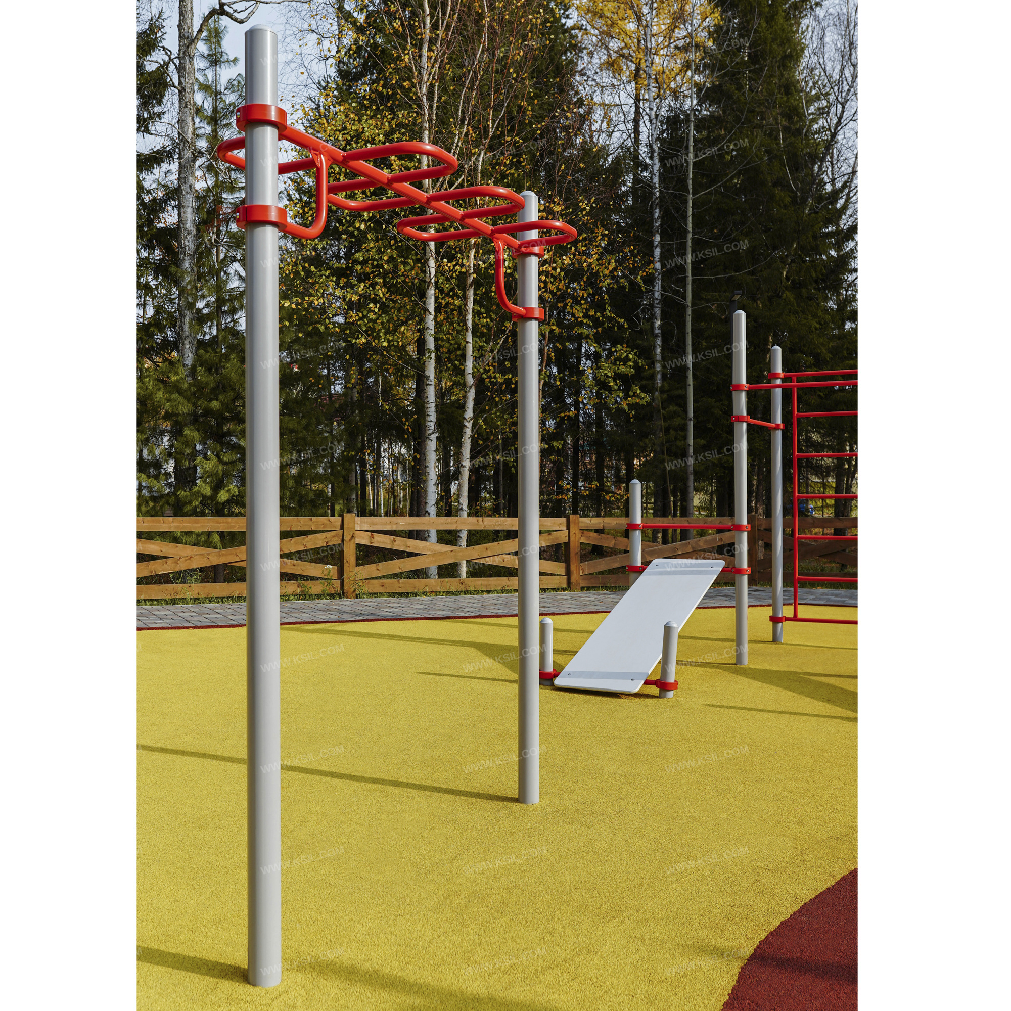 Металлические элементы должны быть покрыты порошковыми красками или подвергнуты гальванизации. Сварные швы должны быть гладкими и исключать возможность травмирования пользователей при контакте. Металлические элементы конструкции не должны состоять из нескольких частей, соединенных между собой.Весь крепеж должен быть оцинкован, все углы закруглены радиусом не менее 3 мм. Концы труб должны быть закрыты.Промежутки и стыки между элементами оборудования не должны допускать застревания частей тела и одежды пользователей. В конструкции должна быть предусмотрена возможность доступа взрослого при обстоятельствах, требующих посторонней помощи пользователю.C целью повышения качества и безопасности продукции, в документацию на изделие могут вноситься изменения (изображение, размеры, и т.п.).