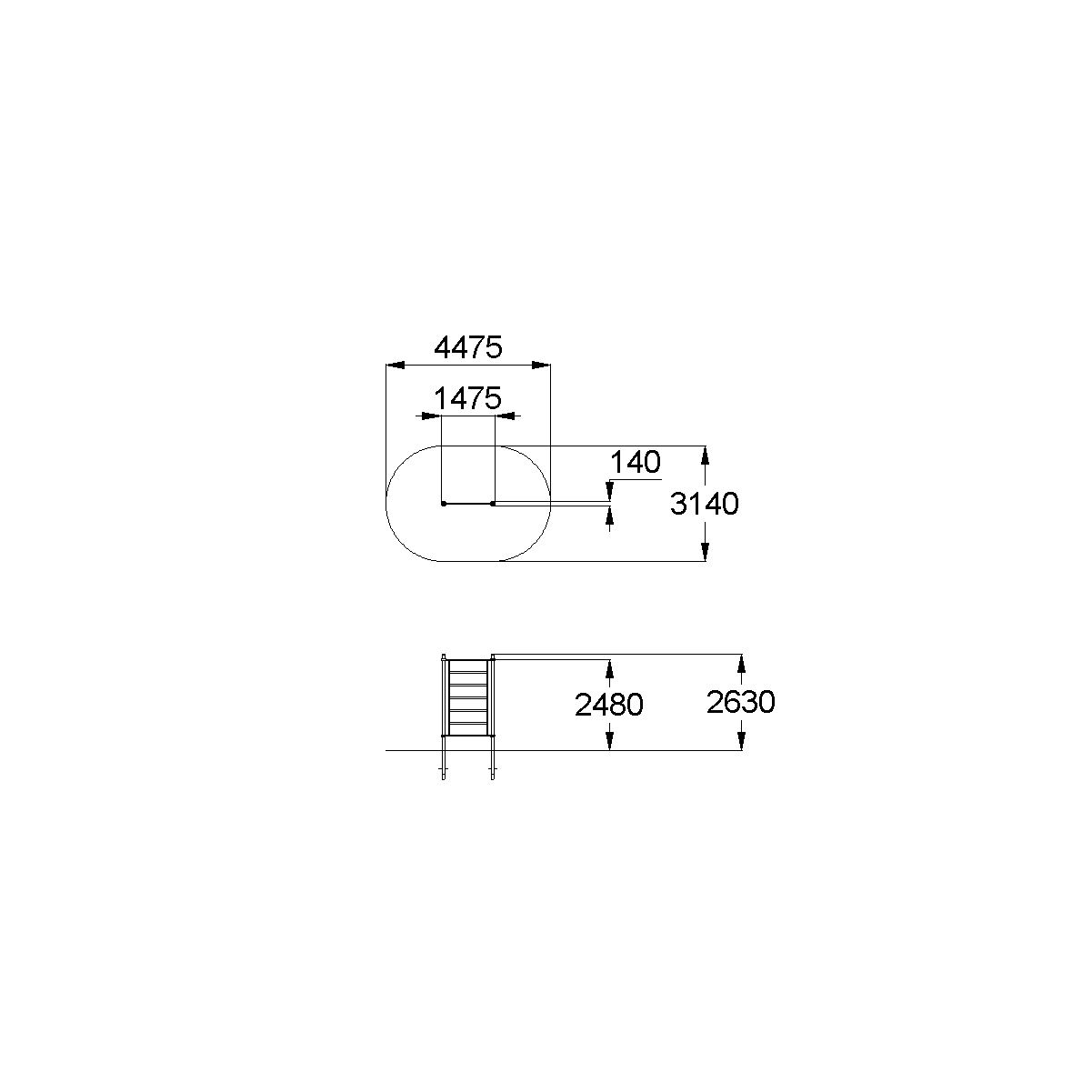 - Габаритные размеры: 1475x140x2630 мм