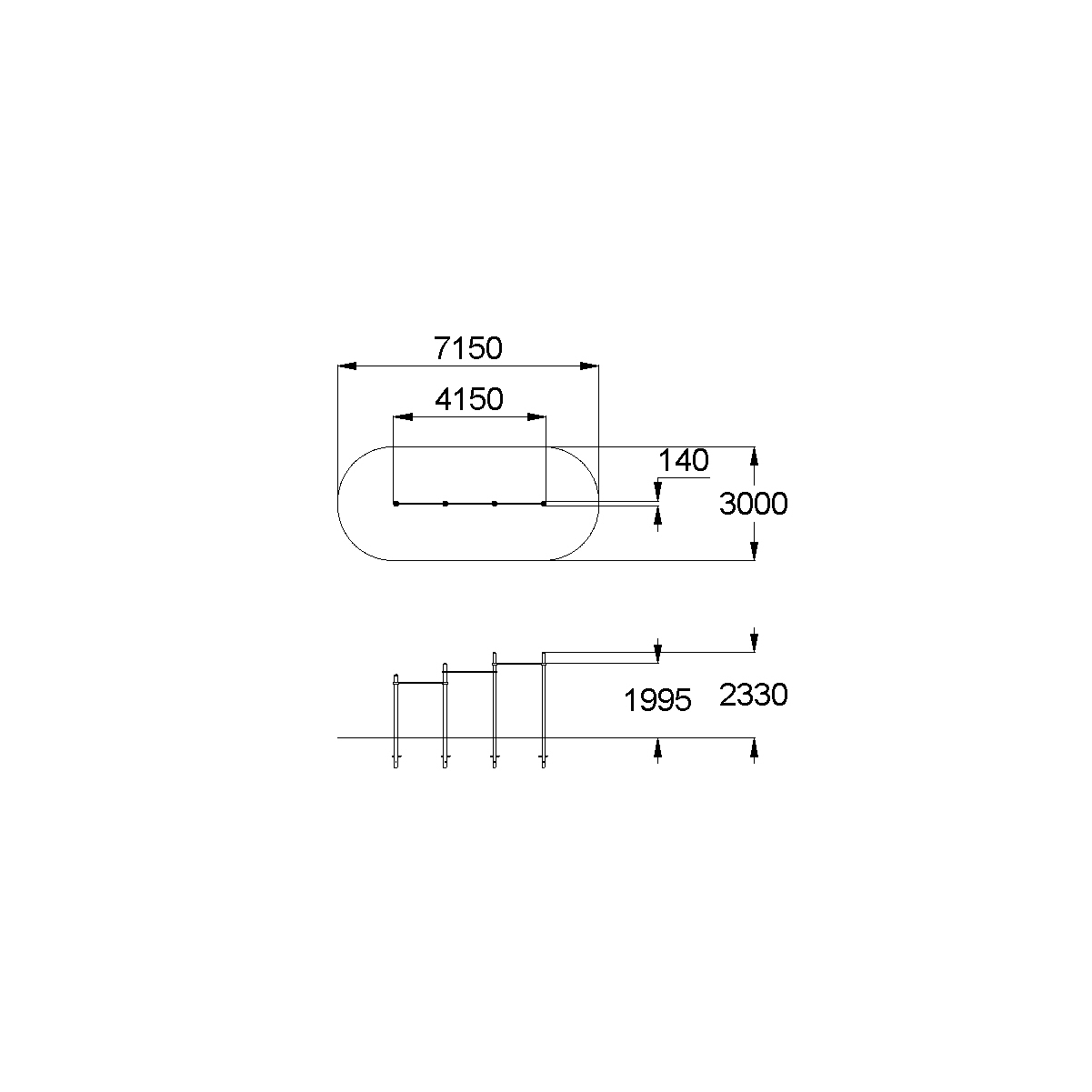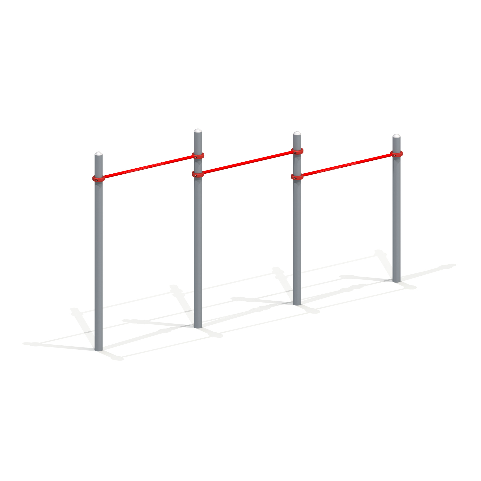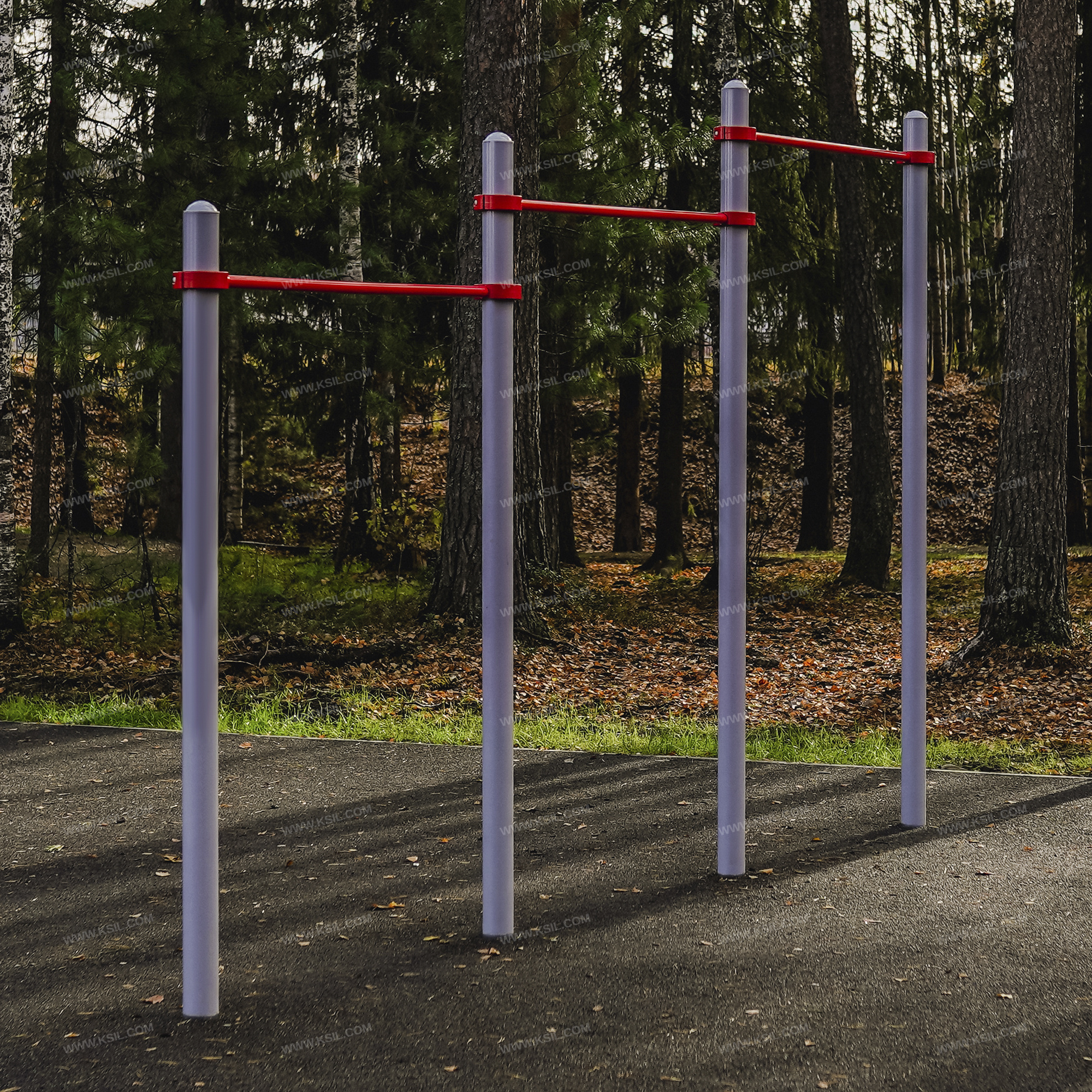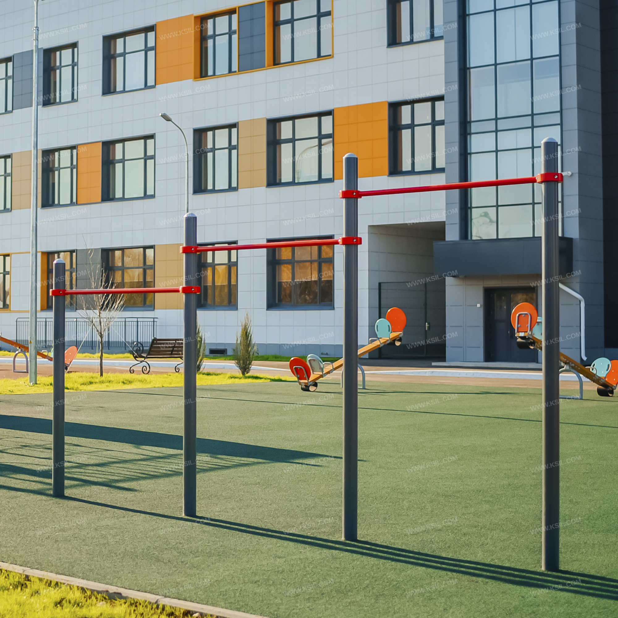 Спортивный комплекс должен представлять собой устойчивую конструкцию, обеспечивающую безопасные условия для занятий спортом на свежем воздухе.Спортивный комплекс должен состоять из 4-х несущих стоек и 3-х перекладин. Несущие стойки должны быть выполнены из металлической трубы диаметром не менее 89 мм с толщиной стенки не менее 3,0мм. Перекладины, крепящиеся к стойкам при помощи хомутов, должны быть изготовлены из металлической трубы диаметром не менее 33 мм с толщиной стенки не менее 2,8мм.Расстояние от поверхности игровой площадки до перекладин должно быть не менее 1520 мм, не менее 1820 мм и не менее 1950 мм.