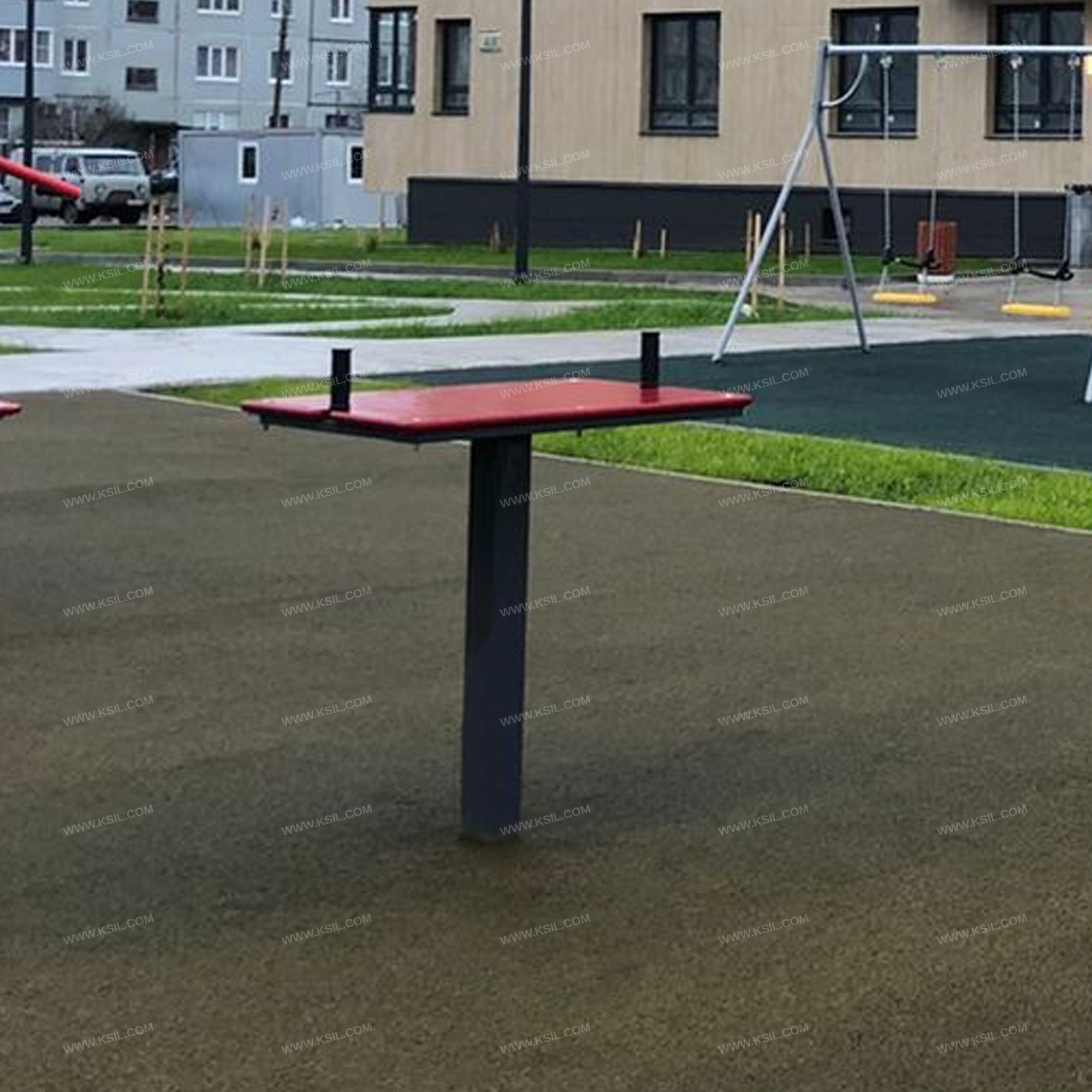 Металлические элементы должны быть покрыты порошковыми красками или подвергнуты гальванизации. Сварные швы должны быть гладкими и исключать возможность травмирования пользователей при контакте. Металлические элементы конструкции не должны состоять из нескольких частей, соединенных между собой.Весь крепеж должен быть оцинкован, все углы закруглены радиусом не менее 3 мм. Концы труб должны быть закрыты.Фанера влагостойкая не ниже I сорта изготовленная из шлифованного березового шпона повышенной водостойкости, склеенного клеем класса эмиссии Е1 с предварительной заделкой (замазкой или вставками) естественных дефектов древесины.Материалы из древесины не должны иметь на поверхности дефектов обработки. Позиции захвата должны быть четко обозначены и иметь шероховатую текстуру для предотвращения скольжения.Заглушки пластиковые на места резьбовых соединений.Регулирующие элементы, не должны находиться в диапазоне движений пользователя.Промежутки и стыки между элементами оборудования не должны допускать застревания частей тела и одежды пользователей. В конструкции должна быть предусмотрена возможность доступа взрослого при обстоятельствах, требующих посторонней помощи пользователю.C целью повышения качества и безопасности продукции, в документацию на изделие могут вноситься изменения (изображение, размеры, и т.п.).