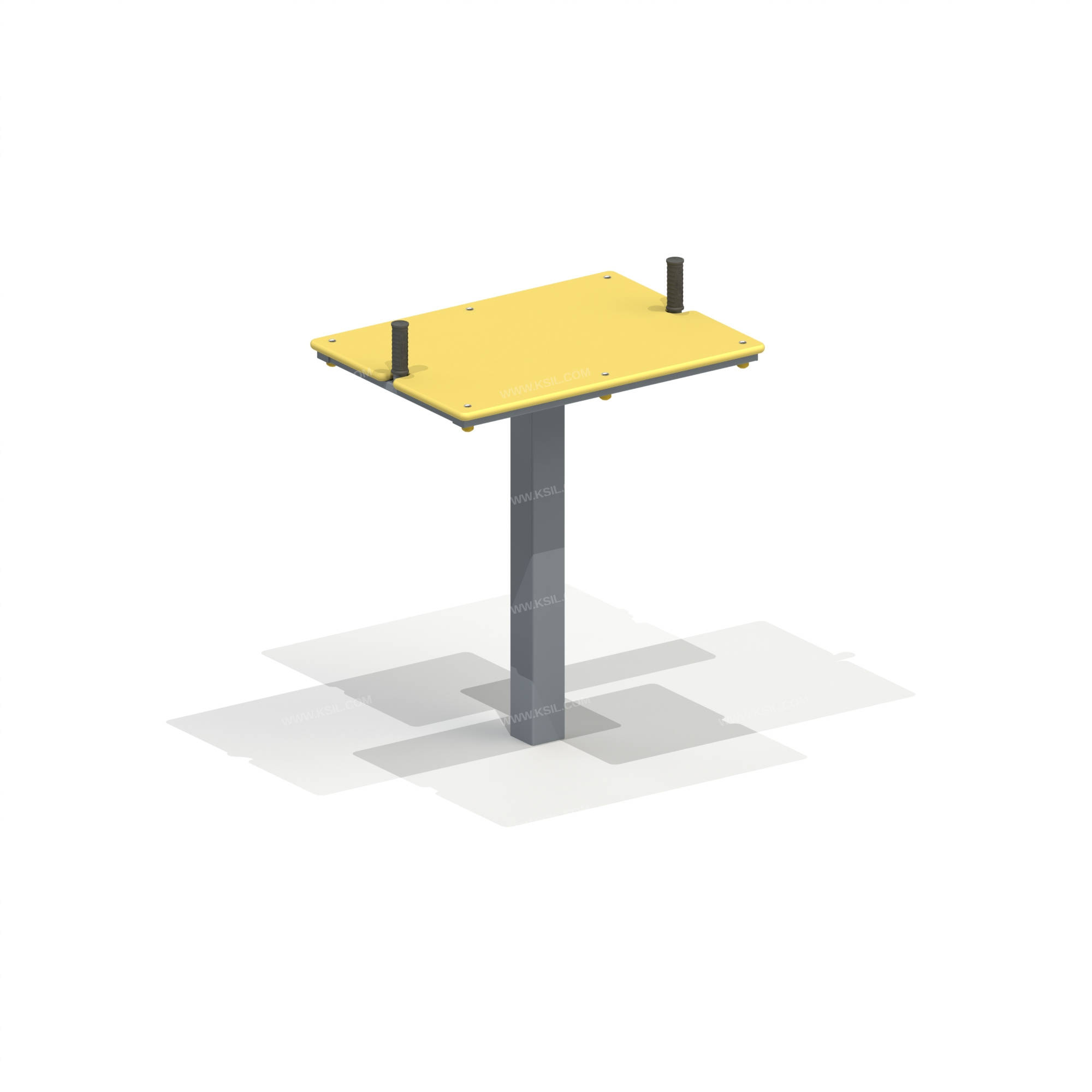 Спортивный тренажер «стол для армрестлинга» рассчитан на двух пользователей.Тренажер должен представлять собой устойчивую конструкцию, обеспечивающую безопасные условия для занятий спортом на свежем воздухе и предназначен для развития и укрепления плечевых, грудных, спинных мышц, мышц бицепса и увеличения эластичности соединительных тканей.Тренажер должен состоять из металлической стойки выполненной из трубы сечением 100х100мм, столешницы выполненной из влагостойкой фанеры толщиной не менее 21 мм, 2-х рукояток. Основание стойки из металлического листа δ = 8мм. Каркас стола выполнен из металлического профиля 50х25х3 мм. Упоры для рук из трубы сечением 33,5мм. Зоны рукояток, предназначенные для захвата, должны быть покрыты слоем атмосферостойкой резины.