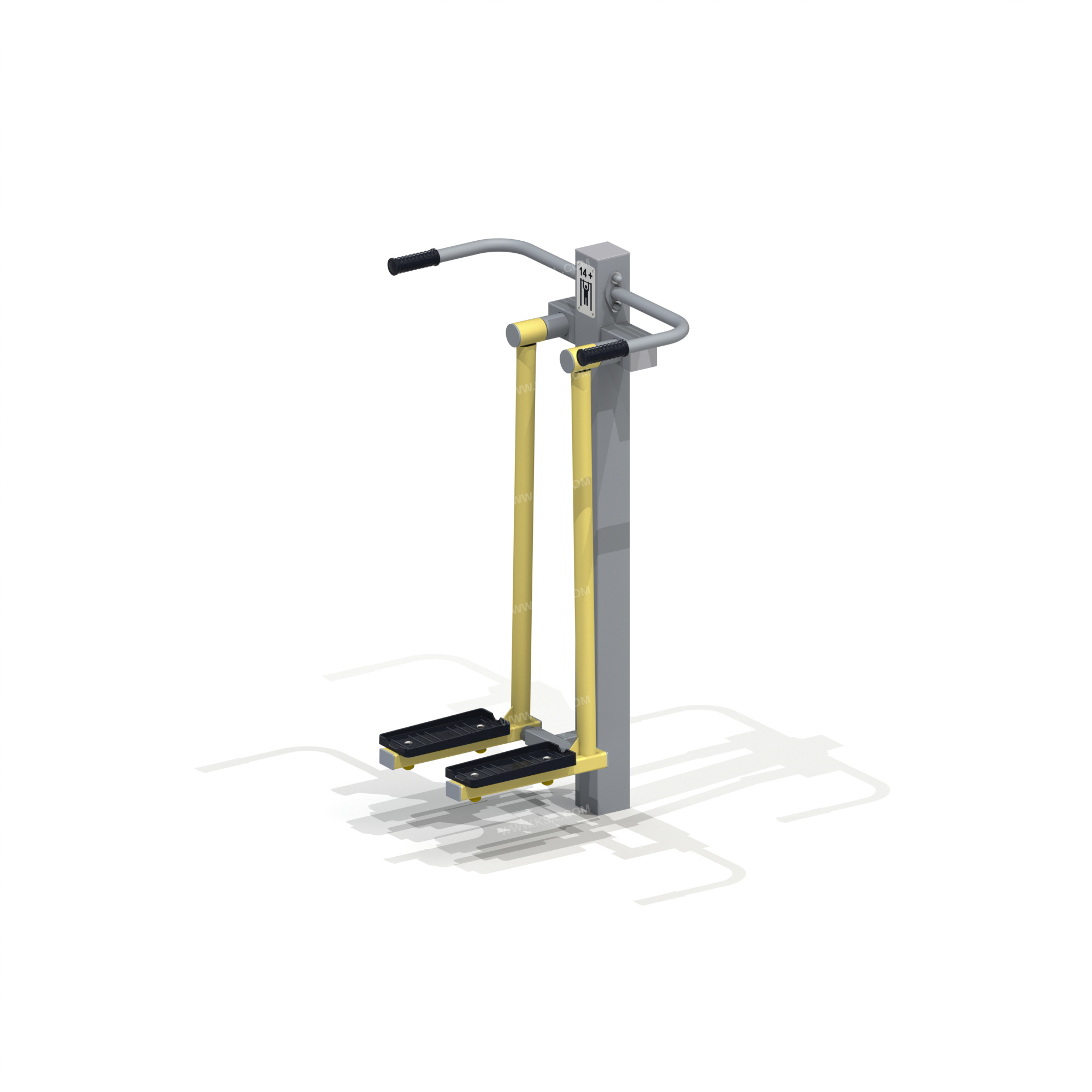 Металлические элементы должны быть покрыты порошковыми красками или подвергнуты гальванизации. Сварные швы должны быть гладкими и исключать возможность травмирования пользователей при контакте. Металлические элементы конструкции не должны состоять из нескольких частей, соединенных между собой.Весь крепеж должен быть оцинкован, все углы закруглены радиусом не менее 3 мм. Концы труб должны быть закрыты.Металлические элементы должны быть покрыты порошковыми красками или подвергнуты гальванизации. Сварные швы должны быть гладкими и исключать возможность травмирования пользователей при контакте. Металлические элементы конструкции не должны состоять из нескольких частей, соединенных между собой.Весь крепеж должен быть оцинкован, все углы закруглены радиусом не менее 3 мм. Концы труб должны быть закрыты.Позиции захвата должны быть четко обозначены и иметь шероховатую текстуру для предотвращения скольжения.Заглушки пластиковые на места резьбовых соединений.Регулирующие элементы, не должны находиться в диапазоне движений пользователя.Промежутки и стыки между элементами оборудования не должны допускать застревания частей тела и одежды пользователей. В конструкции должна быть предусмотрена возможность доступа взрослого при обстоятельствах, требующих посторонней помощи пользователю.C целью повышения качества и безопасности продукции, в документацию на изделие могут вноситься изменения (изображение, размеры, и т.п.).